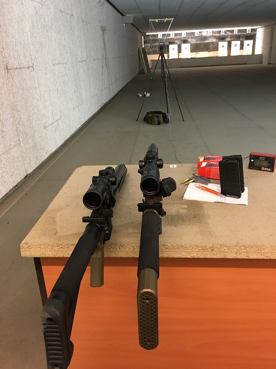 Maybe interesting for the one or the other – if you don`t have a chrony but you want to use a ballistic calculator – Here, some new measurements out of my new DAR-15 IPSC with a Lothar Walther 16,75″ barrel (described with detailled specs here: DAR homepage – barrels ) and compared to the values of my old STI Custom Competition rifle (also 16,75″ as far as I know Nordic barrel). I´ve measured the two Geco factory loads .223 55grs and 63grs (BC .55grs is 0.275 and 63grs 0.345) .